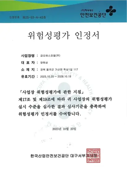 | 2025. 10 | 위험성평가 인정서 취득 | |