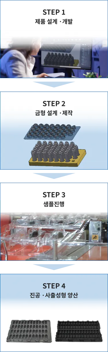 주문에서 납품까지 이어지는 One-Stop System을 통해 최소의 시간으로 최고의 품질을 보장합니다.